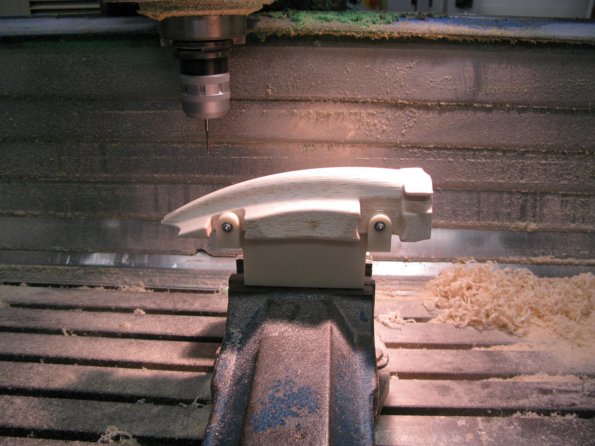 Vlastní přípravě obrábění naší formule ve firmě MCAE Systems předcházela kontrola CAD modelu, zda neobsahuje nějaké chyby, které mohou ovlivnit obrábění. Několik takových problematických oblastí se objevilo, ale naštěstí je bylo možné opravit v modeláři Tebisu. Po opravě modelu se přešlo k obrábění. Nejprve byl model formule vyhrubován zespodu, aby se otevřely kapsy s podběhy pro kola. Tento postup byl zvolen proto, aby bylo možné použít speciální upínací přípravek, který umožnil bezproblémové upínání a obrobení ze všech potřebných stran. Zvláštností tohoto přípravku je, že byl vyroben na 3D tiskárně technologií Rapid Prototyping (rychlá výroba dílů), a to rovněž ve firmě MCAE Systems. Po upnutí do přípravku začalo obrábění z jednoho boku, pak z druhého a nakonec seshora. Každý bok byl nejprve vyhrubován z dodaného balzového polotovaru. Poté byly zvoleny operace pro dokončování. Nakonec byly shora opět použity strategie pro dokončování, zejména pro perfektní napojení obou boků. Obrázky ukazují některé fáze výroby a také hotový tvar.